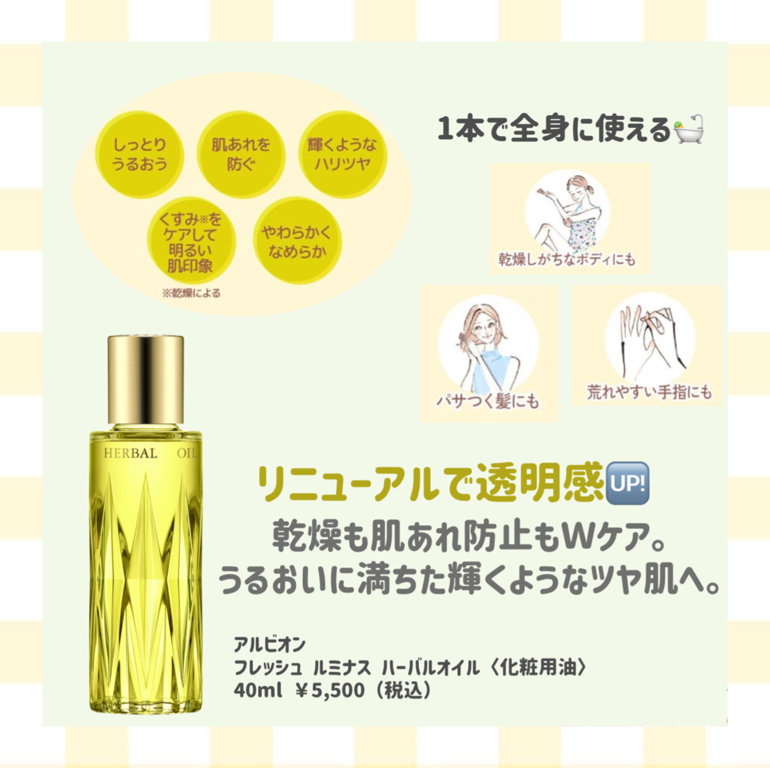 ハーバルオイルをつけるとオイルマッサージしたように肌が安心してふわーっとほぐれます🥰